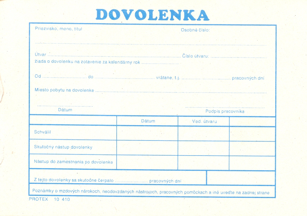 Dovolenkové lístky, formát A6, 100 lístkov v bloku.