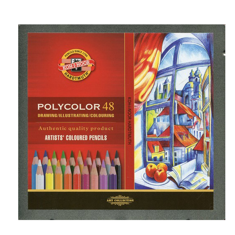 Značené drevené 48-farebné farbičky POLYCOLOR v kovovej krabičke. Nelámavé šesťhranné farbičky vysokej kvality. Dĺžka 175 mm, hrúbka farbičky 7 mm, hrúbka tuhy 3,8 mm.