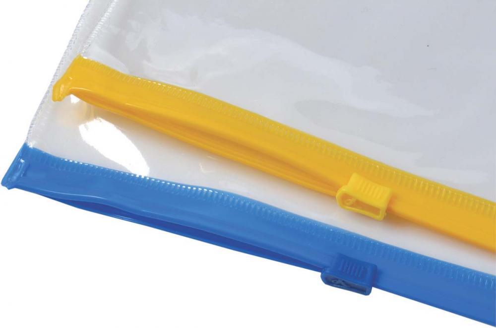 Plastový obal so sťahovacím uzáverom na ukladanie a prenášanie dokumentov. Hrúbka plastu 0,14 mm, formát A4.