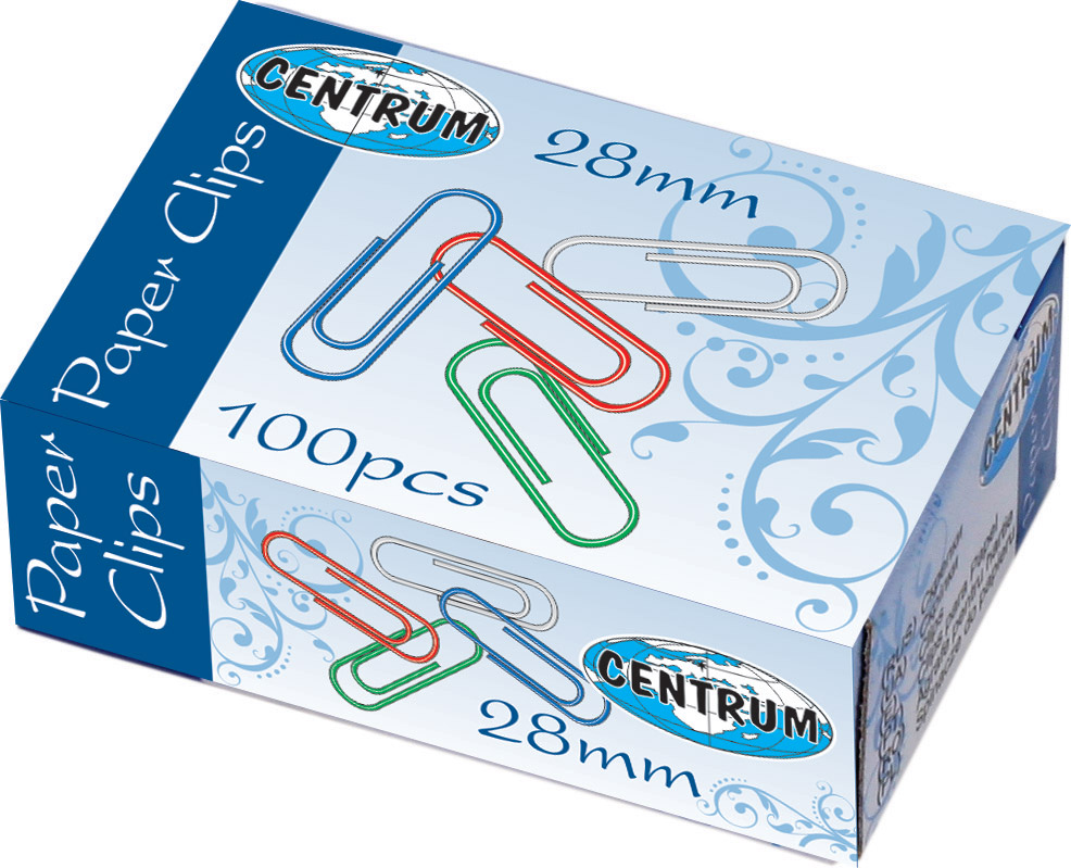 Spisové spony kovové oblé farebné, dĺžka 28mm, 100ks v balení.