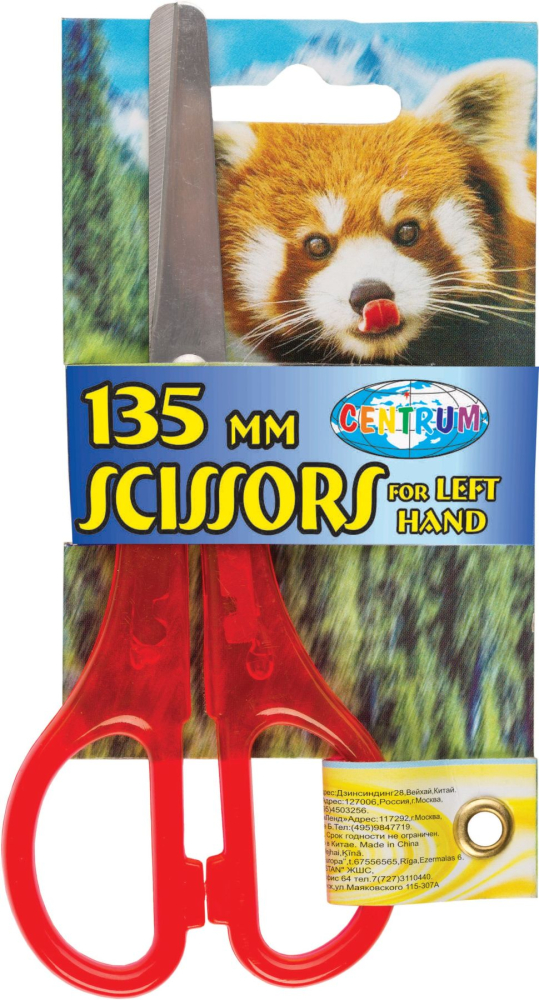 Školské nožnice 13,5cm so zaoblenými hrotmi, plastové držadlá. Určené pre ľavákov. Dĺžka strihu cca 5 cm.