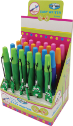Pestrofarebné guľôčkové pero s príveskom na vrchnáku. Mix farieb a príveskov. Hrúbka stopy: 1mm.