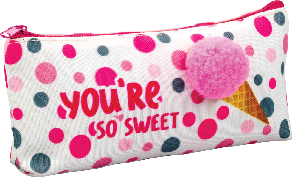 Púzdro na školeské pomôcky s motivačnými nápismi. Rozmer: 20x3,5x8cm. Vyrobené z polyesteru.