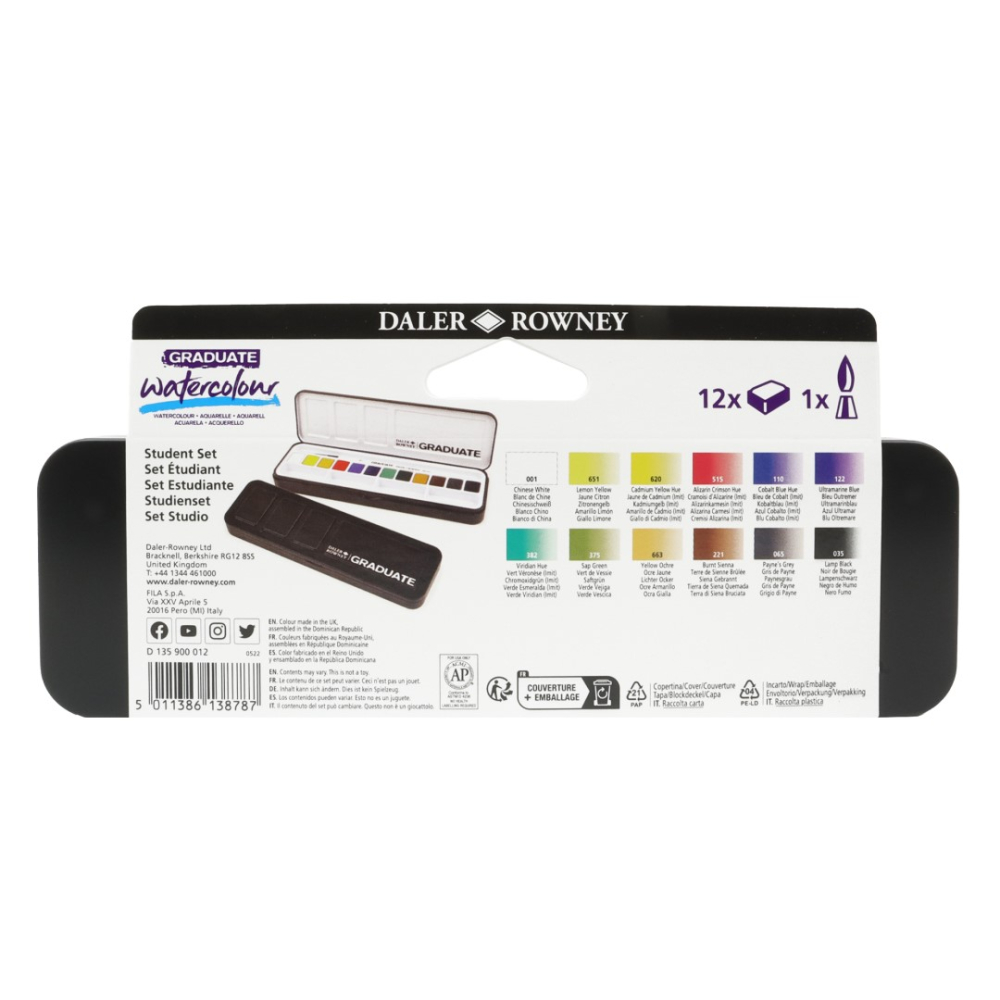 Akvarel farby Graduate cestovná sada + štetec 12ks