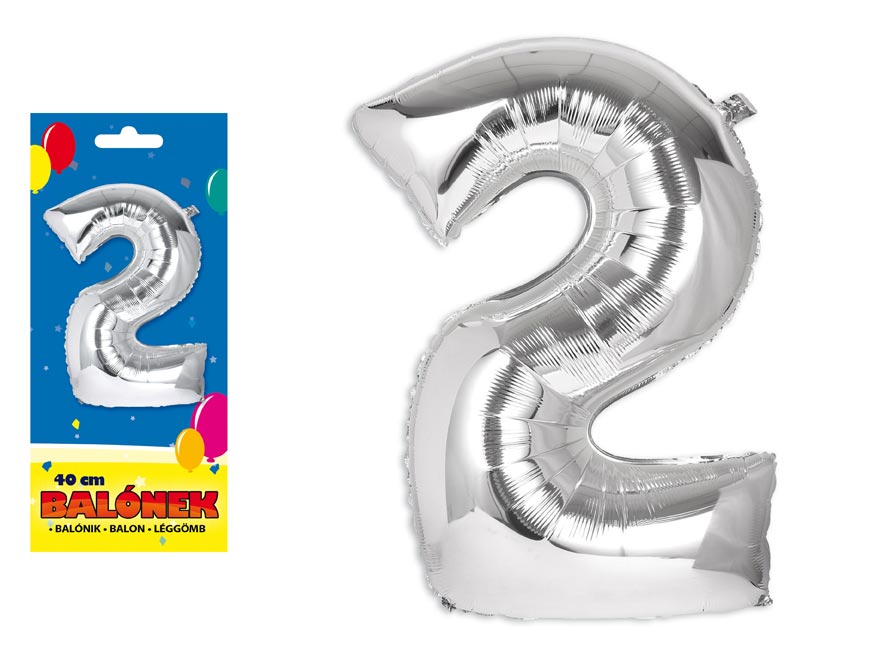 Nafukovací fóliový balónik v tvare čísla 2. Balónik je vyrobený zo striebornej fólie. Na hornom okraji balónu sú očká na priviazanie. Balóniky sú vhodné na narodeninové oslavy, firemné párty a iné spoločenské udalosti.Výška balónu: 40 cmUvedená