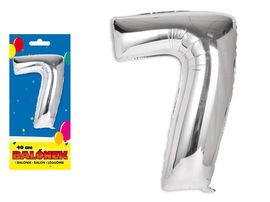 Nafukovací fóliový balónik v tvare čísla 7. Balónik je vyrobený zo striebornej fólie. Na hornom okraji balónu sú očká na priviazanie. Balóniky sú vhodné na narodeninové oslavy, firemné párty a iné spoločenské udalosti.Výška balónu: 40 cmUvedená