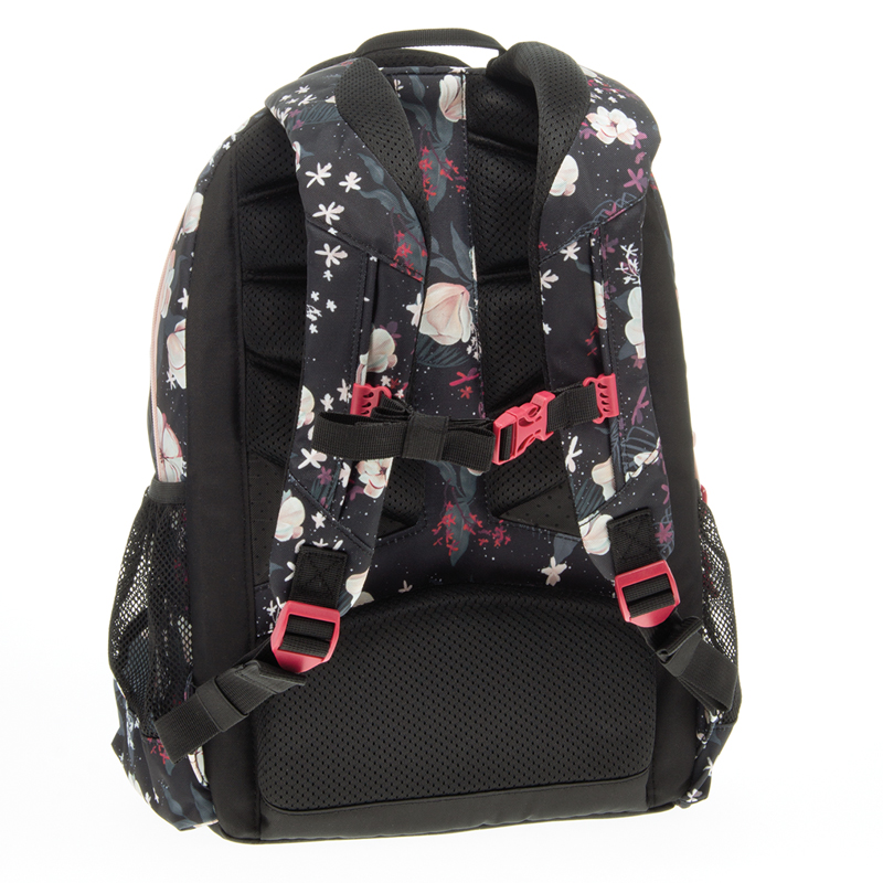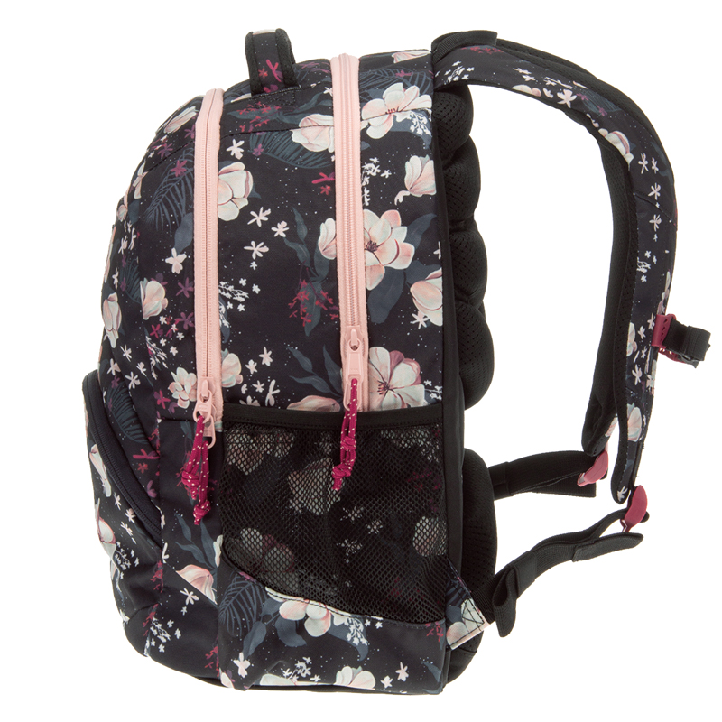 Jasne transparentné, praktické na usporiadanie, ktorých súčasťou sú 2 bočné sieťované vrecká na fľašu s vodou a malé školské potreby, 1 veľká priehradka s polstrovaným držiakom na notebook.