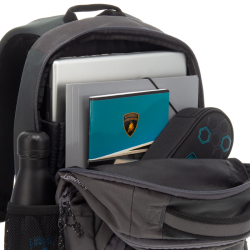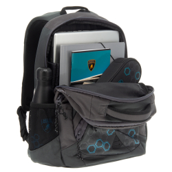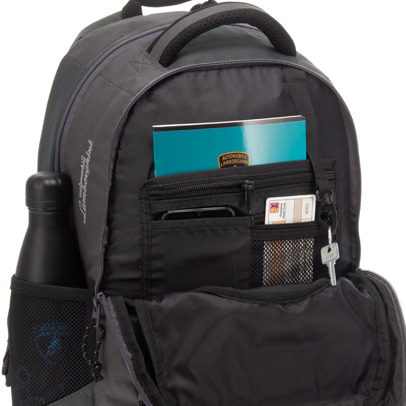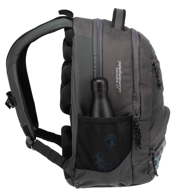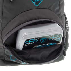 Batoh s logom Lamborghini. Veľkokapacitný batoh sa odporúča pre vyššie ročníky. Priedušné ramenné popruhy sa dajú nastaviť podľa veľkosti. Mimoriadne ľahké. Vyrobené z pevného, vodu odpudzujúceho materiálu. Vo veľkej priehradke na zips sa dobre zmestia školské potreby. Priehradka na notebook. Veľké vonkajšie vrecko s odolným syntetickým zipsom. Batoh má 2 bočné sieťované vrecká na uloženie fliaš a menších predmetov. Rozmer: 32x50x18 cm. Objem: 24l. Nosnosť: do 10 kg