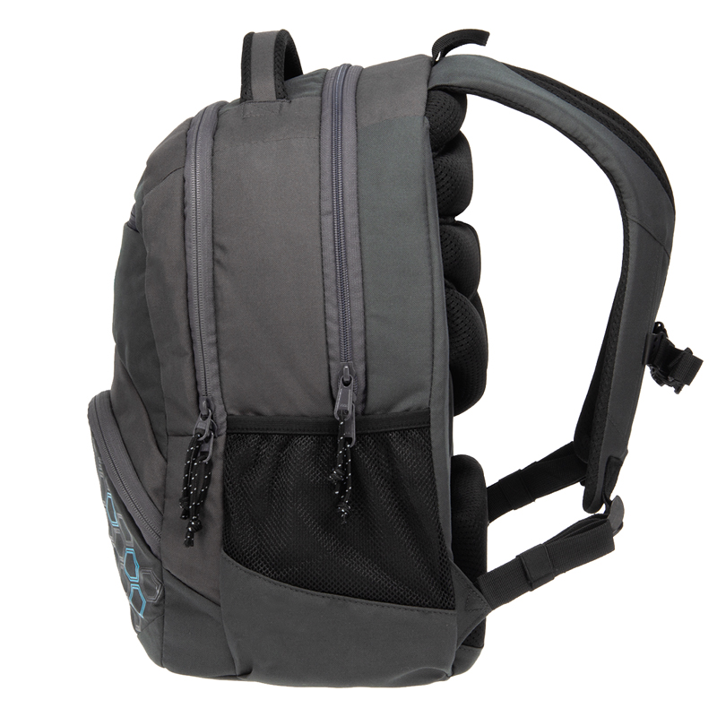 Jasne transparentné, praktické na usporiadanie, ktorých súčasťou sú 2 bočné sieťované vrecká na fľašu s vodou a malé školské potreby, 1 veľká priehradka s polstrovaným držiakom na notebook.