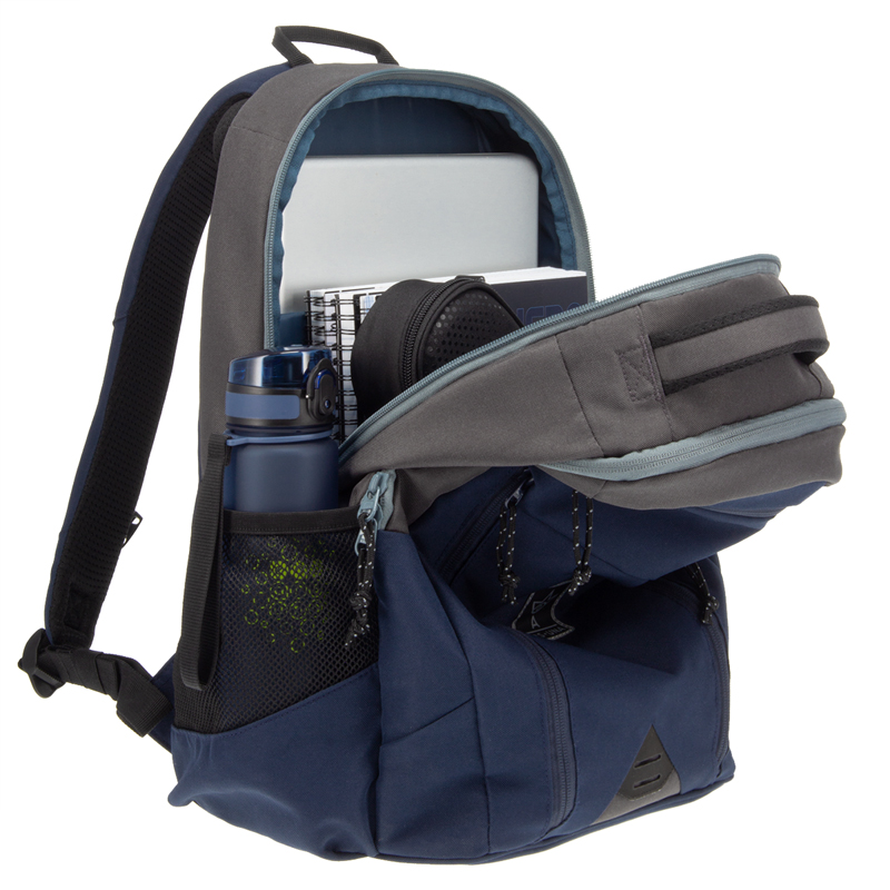 Jasne transparentné, praktické na usporiadanie, ktorých súčasťou sú 2 bočné sieťované vrecká na fľašu s vodou a malé školské potreby, 1 veľká priehradka s polstrovaným držiakom na notebook.