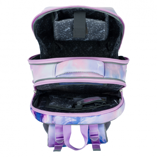 Školská aktovka SHELLY s vystuženým telom, vhodná od 1. triedy ZŠ. • Telo aktovky je tvorené z pevnej výstuže a funguje teda rovnako ako pancier. Všetko vovnútri je bezpečne chránené. • Dvojkomorový systém kvôli optimálnemu rozdeleniu záťaž
