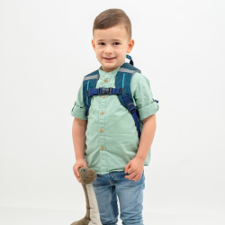 Zadná strana batohu obsahuje mäkkú penu pre pohodlné nosenie. Polstrované ramenné popruhy sú ľahko nastaviteľné, takže sú pohodlné na chrbát predškolákov. Navyše je batoh dodávaný s hrudným popruhom , ktorého dĺžku je možné nastaviť. Hrudné popruhy sú v tomto veku dôležité, pretože zabraňujú skĺznutiu batohu z detských ramien. Väčšia priehradka poskytuje dostatok priestoru pre plyšové hračky, malú deku alebo oblečenie. Predná priehradka je ideálna na uloženie boxu na desiatu. Táto priehradka sa dá rozšíriť asi o 6 cm. Do bočných vreciek sa zmestí fľaša na vodu (do 0,7 l) a dáždnik. Zipsy sa veľmi ľahko otvárajú a zatvárajú aj malými detskými rukami a prstami. Reflexné prvky umiestnené vpredu a vzadu zvyšujú viditeľnosť. Má dostatočne dlhú rukoväť, aby ho aj rodičia mohli pohodlne nosiť.. Materiál: vodeodolný polyester. Rozmer: 23x20x15cm.