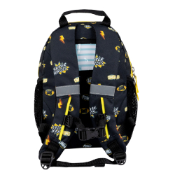 Zadná strana batohu obsahuje mäkkú penu pre pohodlné nosenie. Polstrované ramenné popruhy sú ľahko nastaviteľné, takže sú pohodlné na chrbát predškolákov. Navyše je batoh dodávaný s hrudným popruhom , ktorého dĺžku je možné nastaviť. Hrudné popruhy sú v tomto veku dôležité, pretože zabraňujú skĺznutiu batohu z detských ramien. Väčšia priehradka poskytuje dostatok priestoru pre plyšové hračky, malú deku alebo oblečenie. Predná priehradka je ideálna na uloženie boxu na desiatu. Táto priehradka sa dá rozšíriť asi o 6 cm. Do bočných vreciek sa zmestí fľaša na vodu (do 0,7 l) a dáždnik. Zipsy sa veľmi ľahko otvárajú a zatvárajú aj malými detskými rukami a prstami. Reflexné prvky umiestnené vpredu a vzadu zvyšujú viditeľnosť. Má dostatočne dlhú rukoväť, aby ho aj rodičia mohli pohodlne nosiť.. Materiál: vodeodolný polyester. Rozmer: 23x20x15cm.