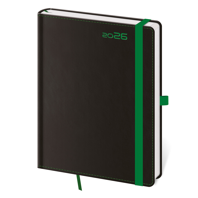 Dosky diára sú vyrobené z matného materiálu na báze zušľachteného papiera, ktorý je bez štruktúry a tým neruší vzhľad samotného produktu. Diár je doplnený gumičkou na uzavretie a pútkom na pero. Kompletný dizajn dopľňa obšitie dosiek niťou. Diár obsahuje: osobné údaje, plánovač dovolenky (mesačný prehľad), plánovací kalendár, telefónne predvoľby, štátne sviatky Českej a Slovenskej republiky, medzinárodné sviatky, ročný výhľad, denný layout, adresár, mapa Európy a Českej a Slovenskej republiky. Rozmery: 145x205 mm. Počet strán: 352