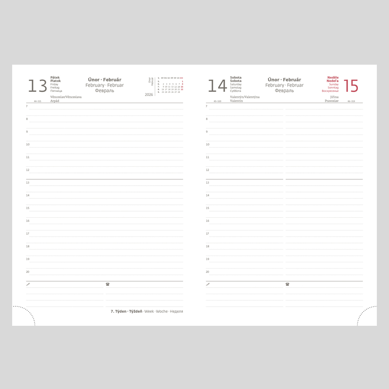 Predstavujeme moderný typ diárov s vymeniteľnými doskami a variabilným obsahom. Praktické dosky diára sú vybavené pútkom na ceruzku, magnetickou uzavieracou klapkou a ich okraj zdobí obšitie niťou. Dosky je možné použiť opakovane pre diáre i zápisníky, preto neobsahujú razbu letopočtu. Kvalitná koženka umožňuje dosiahnuť vynikajúce výsledky pri razbe bez fólie. Do diára Flip možno pridať poznámkový blok. Stačí si vybrať jednu z náhradných náplní, ktorú možno jednoducho do dosiek doplniť. S obľúbenými doskami FLIP sa používateľ nemusí lúčiť ani v budúcom roku. Pripravíme opäť náhradné náplne pre denné a týždenné diáre. Diár obsahuje: osobné údaje, plánovač dovolenky (mesačný prehľad), plánovací kalendár, telefónne predvoľby, štátne sviatky Českej a Slovenskej republiky, medzinárodné sviatky, ročný výhľad, denný layout, adresár, mapa Európy a Českej a Slovenskej republiky. Rozmery: 143x205 mm. Počet strán: 352.