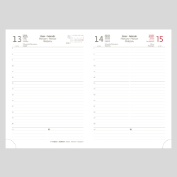 Predstavujeme moderný typ diárov s vymeniteľnými doskami a variabilným obsahom. Praktické dosky diára sú vybavené pútkom na ceruzku, magnetickou uzavieracou klapkou a ich okraj zdobí obšitie niťou. Dosky je možné použiť opakovane pre diáre i zápisníky, preto neobsahujú razbu letopočtu. Kvalitná koženka umožňuje dosiahnuť vynikajúce výsledky pri razbe bez fólie. Do diára Flip možno pridať poznámkový blok. Stačí si vybrať jednu z náhradných náplní, ktorú možno jednoducho do dosiek doplniť. S obľúbenými doskami FLIP sa používateľ nemusí lúčiť ani v budúcom roku. Pripravíme opäť náhradné náplne pre denné a týždenné diáre. Diár obsahuje: osobné údaje, plánovač dovolenky (mesačný prehľad), plánovací kalendár, telefónne predvoľby, štátne sviatky Českej a Slovenskej republiky, medzinárodné sviatky, ročný výhľad, denný layout, adresár, mapa Európy a Českej a Slovenskej republiky. Rozmery: 143x205 mm. Počet strán: 352.