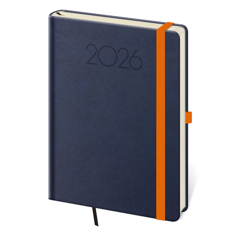 Diár je vyrobený zo zaujímavej matnej koženky s nepravidelnou štruktúrou, navyše je doplnený gumičkou na uzatvorenie v kontrastnej farbe. Vzhľadom na štruktúru materiálu je vhodná pre razbu bez fólie, neodporúčame však raziť drobné texty, ktoré môžu pri razbe zaniknúť. Diár obsahuje: osobné údaje, plánovač dovolenky (mesačný prehľad), plánovací kalendár, telefónne predvoľby, štátne sviatky Českej a Slovenskej republiky, medzinárodné sviatky, ročný výhľad, denný layout, adresár, mapa Európy a Českej a Slovenskej republiky. Rozmery: 145x205 mm. Počet strán: 352.