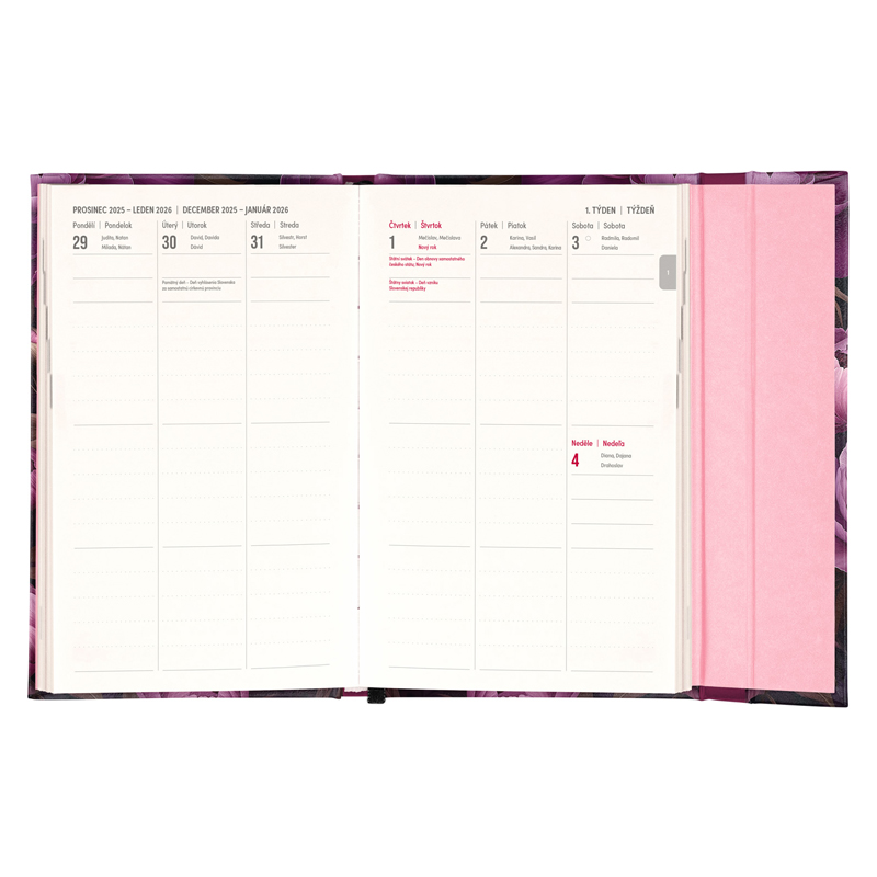 Šesťjazyčný týždenný diár s medzinárodnými sviatkami a praktickým magnetickým uzatváraním je ideálnou voľbou pre tých, ktorí chcú mať svoje plány prehľadne pod kontrolou. Ponúka stĺpcové rozvrhnutie jednotlivých týždňov s dostatkom priestoru pre každodenné poznámky.Súčasťou sú praktické mesačné prehľady, ideálne na plánovanie dovoleniek či prázdnin. Rozmery: 130x210 mm. Počet strán 144.