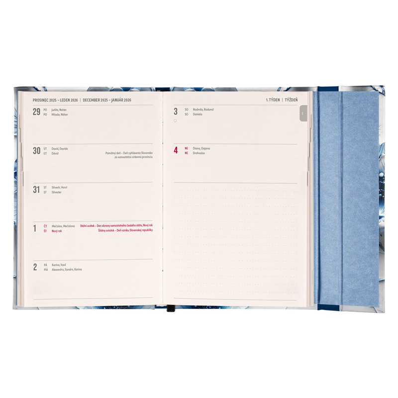 Šesťjazyčný týždenný diár s medzinárodnými sviatkami a praktickým magnetickým uzatváraním je ideálnou voľbou pre tých, ktorí chcú mať svoje plány prehľadne pod kontrolou. Ponúka stĺpcové rozvrhnutie jednotlivých týždňov s dostatkom priestoru pre každodenné poznámky.Súčasťou sú praktické mesačné prehľady, ideálne na plánovanie dovoleniek či prázdnin. Rozmery: 110x160 mm. Počet strán 144.