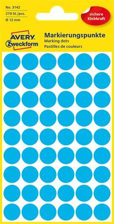 Farebné okrúhle etikety AVERY. -ideálne na: označovanie, systematizáciu, plánovanie, triedenie dokumentov -samolepiace -balenie: 270 ks/bal -farba: modrá