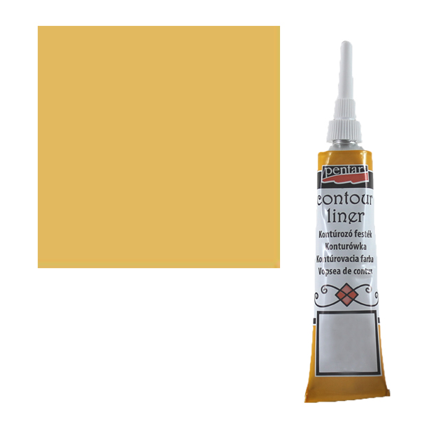 Kontúra PENTART 20 ml - je univerzálna hustá farba na vodnej báze, aplikovateľná na akomkoľvek povrchu, na obkreslenie motívov, zvýraznenie obrysov, alebo na vytváranie 3D dekorácií. Môžeme používať v kombinácií s farbami na sklo na syntetickej báze a jednak s farbami na sklo a porcelán na vodnej báze. Farba: zlatá.