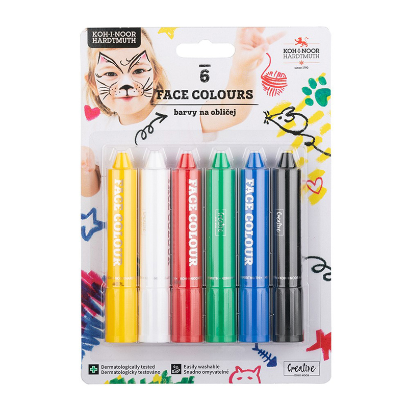 Súprava farieb na tvár, 6 farebných odtieňov. Ideálne na líčenie pri karnevaloch,športových podujatiach, detských oslavách a pod.