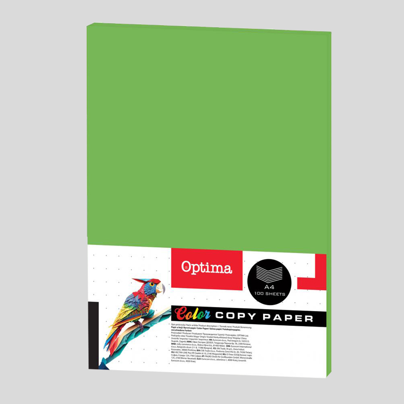 Farebný papier A4, 80g, 100 listov v balení. Farba: zelená.