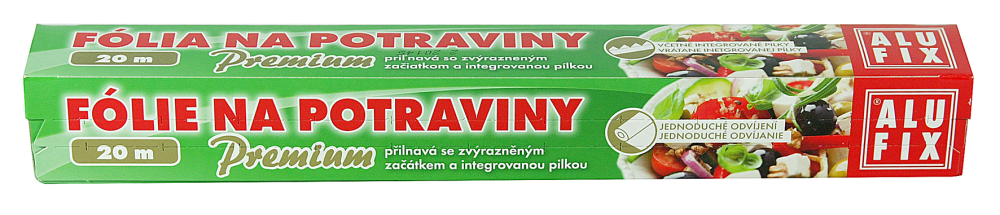 Kuchynská fólia na potraviny v krabičke. Súčasťou krabičky je pílka pre ľahšie delenie fólie na menšie časti, po úsekoch aké vyhovujú Vám. Balenie: 20m.