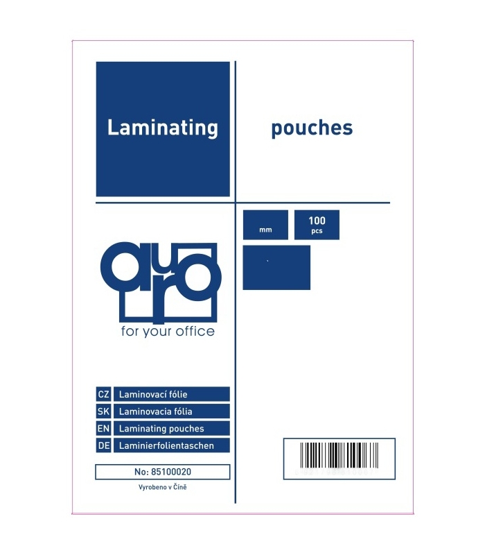Laminovacie fólie vhodné pre všetky druhy stolových laminátorov. Zvýraznia vzhľad Vašich dokumentov a poskytnú im maximálnu ochranu proti nečistotám. Rozmer 154 x 216 mm - A5, 100 mikrónov, 100 ks v balení.