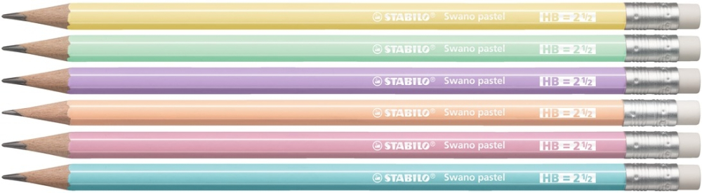 Tenká, šesťhranná grafitová ceruzka s gumou v pastelovej farbe. Tvrdosť HB Značka: STABILO Výrobca: STABILO international GmbH Magyarországi Fióktelepe Adresa: 1033 Budapest, Szőlőkert köz 7/a., Hungary Web: www.stabilo.hu Email: info.hu@stabilo.com