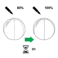 - Rýchla a jednoduchá inštalácia nafúknutím vnútornej lopty pomocou priloženej ručnej pumpy a zasunutím zátky.