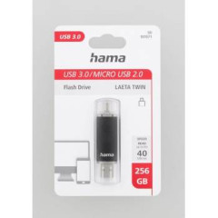 Hama flashPen Laeta Twin, USB 3.0, 256 GB, 40 MB/s, USB-A - micro USB