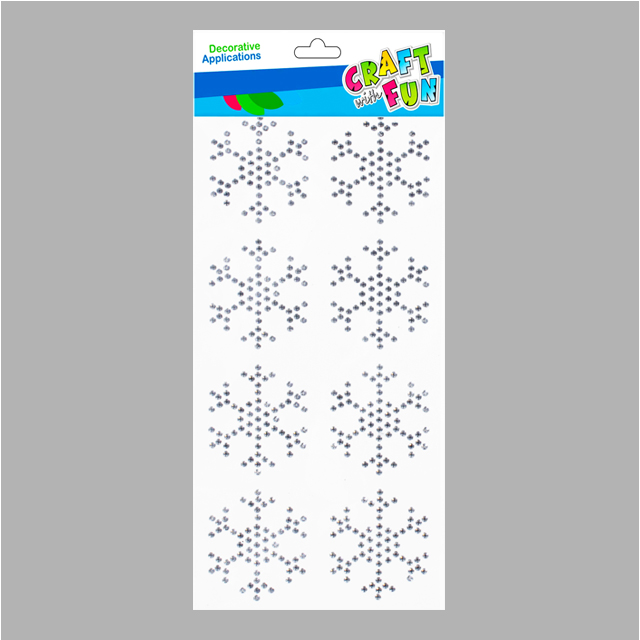 Vianočné dekoračné kryštáliky samolepiace, vločky strieborné, 8 ks, balenie: 12/144