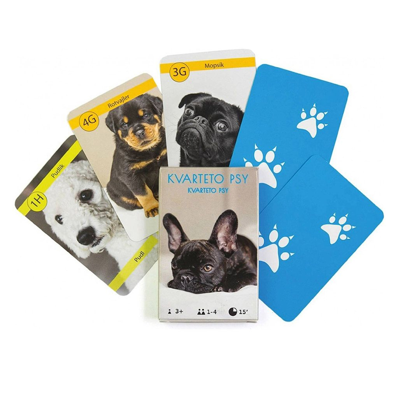 Kartová hra kvarteto s motívom psi. Kvarteto je hra, kde hráči ťahajú karty jeden od druhého a skladajú z nich štvorice. Víťazom sa stáva hráč, ktorý nemá v ruke žiadne karty a na stole má najviac ''kvartet''.