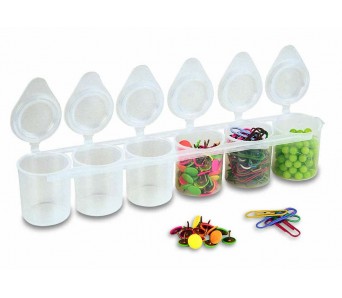 Plastové uzatvárateľné kelímky so širokou škálou využitia. Kelímky sú vhodné na farby, korálky, drobný kancelársky sortiment, lieky a pod.