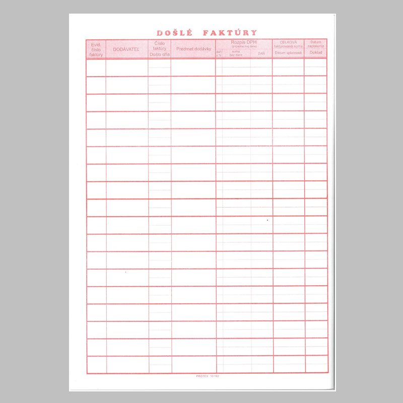 Kniha došlých faktúr A4,720 položiek.40list.10192