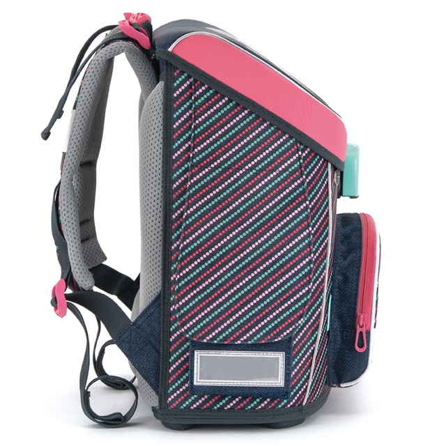 Bezpečnosť zaisťujú reflexné prvky a odrazky, ktoré sú umiestnené na viditeľných častiach aktovky. Na ľahké prenášanie slúži ergonomická silikónová rukoväť, navrhnutá priamo na detskú dlaň. Po oboch bokoch sú dve priestranné priehradky na suchý zips, ktoré sú na fľašu na pitie, či poslúžia ako vrecko na prezúvky. Ich výhodou je variabilita, kedy v normálnom stave je priehradka zložená k stene aktovky a v prípade potreby sa jednoducho roztiahne.