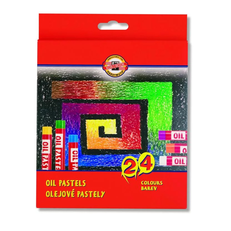 Školské olejové kriedy, súpravy s rôznym počtom farieb v papierovej krabičke. Krieda má okrúhly tvar tvar s priemerom 9 mm a dĺžkou 60 mm.
