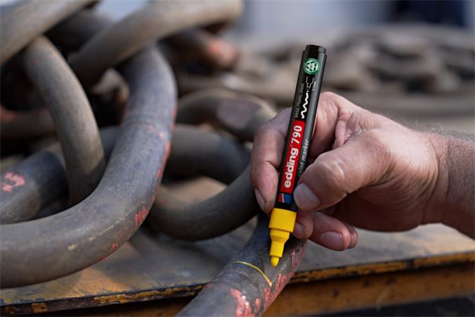 – vhodný na písanie a označovanie na skle, porceláne, plastoch, kove a takmer všetkých povrchoch – zaoblený hrot