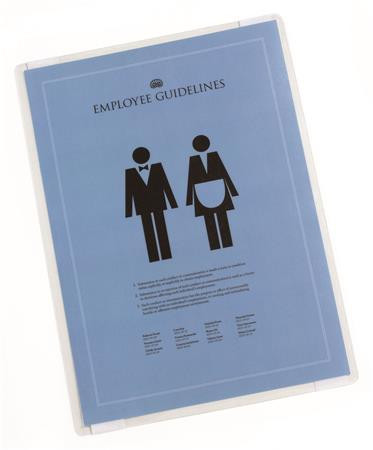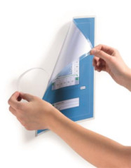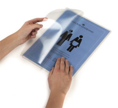 -samolepiace -nie je potrebný laminátor -použitie: na hladkých povrchoch -kapacita: 1 list -viacnásobne odnímateľné a znovu použiteľné -orientácia: na výšku/na šírku -formát: A4 -materiál: plast -rozmery: 210 x 296 mm (š x v)