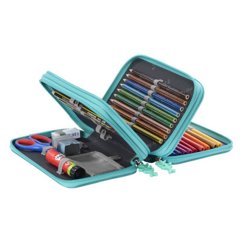 - trojposchodový peračník na uloženie písacích potrieb do školy a na voľný čas - plne vybavený značkovými písacími potrebami (43 kusov) - vrecko na drobné tajné predmety, zatváranie na suchý zips - každú priehradku je možné otvoriť zvlášť, čo uľahčuje prístup k perám a ďalším predmetom - zatváranie na zips Obsah peračníka: - priehradka 1: 1x dvojité strúhadlo, 1x guma, 1x lepidlo v tyčinke, 1x nožnice, 1x rovné pravítko 15 cm 1x hrubá trojhranná ceruzka a 1x tenká trojhranná ceruzka malé priehľadné vrecko na drobnosti - priehradka 2: 18 tenkých trojhranných pasteliek vr. strieborné a zlaté farby - priehradka 3: 18 farebných fixiek Udržateľnosť: - 100% PET RECYCLED - ekologický výrobok, látka je vyrobená z recyklovaných PET fliaš - 100% PFC FREE – používame impregnáciu bez škodlivých PFC chemikálií, naša impregnácia je šetrná vyrobená na vodnej báze - 100% VEGAN PRODUCT- nepoužívame materiály živočíšneho pôvodu - vyrobené s ohľadom na životné prostredie (bluesign® - System Partner)) - vyrobené v prevádzke s dobrými sociálnymi a bezpečnostnými podmienkami pre zamestnancov, člen organizácie amfori Technické detaily: - materiál: polyester - rozmery: š. 13,5 cm x v. 20 cm x h. 7 cm - hmotnosť: 590 g