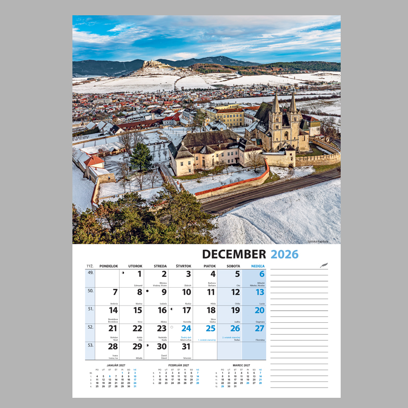 Formát kalendára: 34 x 48,5 cm Počet listov kalendára: 14