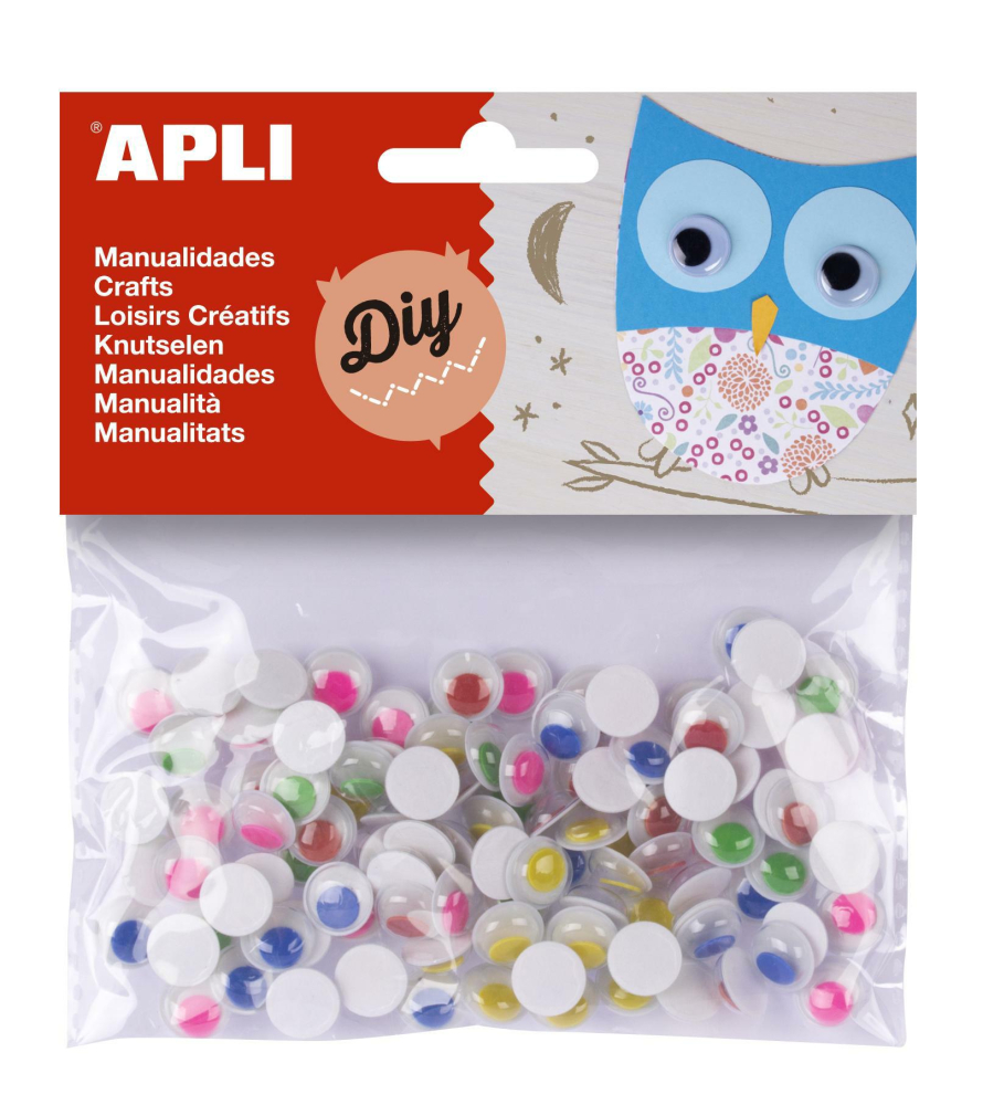 Oči s pohyblivou zorničkou – polotovar na dotvorenie tvárí. Určené na výrobu dekorácií a pedagogické aktivity. ideálne pre školy, škôlky a výtvarné dielne na tvorbu obrázkov, zvierat, postavičiek a pod. zadná strana permanentne lepia
