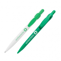 Guľôčkové pero s plastovým telom. Pero píše vo farbe tela. Farba: zelená. Balenie: 25 ks/farba