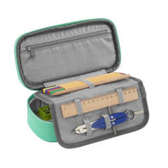 - peračník na perá, ceruzky, pravítka, uhlomer, gumu a ďalšie školské potreby - BEZ VYBAVENIA - vrecko na zips vo veku peračníka - gumičky na zasunutie 6 ceruziek alebo pasteliek - ďalších 7 väčších pútok pre príslušenstvo (napr. pravítko, kružidlo, gumu, malý trojuholník) - okienko na rozvrh hodín - vnútorné veko sa dá otvoriť a zavrieť suchým zipsom - zatváranie na zips - EKOLOGICKÝ VÝROBOK, LÁTKA JE VYROBENÁ Z RECYKLOVANÝCH PET FLIAŠ - vyrobené v súlade s trvale udržateľným rozvojom a so zásadami organizácie bluesign®, ktorých sme hrdým partnerom - vyrobené v prevádzke s dobrými sociálnymi a bezpečnostnými podmienkami pre zamestnanca, člen organizácie amfori Technické parametre: - materiál: polyester - rozmery: v.6 x š.24 x h.11 cm - hmotnosť: 170 g