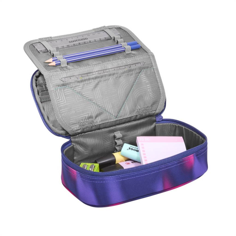 - peračník pre uloženie písacích potrieb, pravítok a ďalších školských alebo osobných predmetov - vrátane malého pravítka a trojuholníku s uhlomerom - vrecko na zips vo veku peračníka pre malé predmety - priehľadná priehradka napr. pre rozvrh hodín - 21 pútok na perá a ceruzky pre prehľadné usporiadanie - pútka pre malé pravítko a všité vrecko pre trojuholník - zatváranie vnútorného veka na suchý zips - zatváranie peračníku na zips Udržateľnosť: - 100% PET RECYCLED - ekologický výrobok, látka je vyrobená z recyklovaných PET fliaš - 100% PFC FREE - používame impregnáciu bez škodlivých PFC chemikálií, naša impregnácia je šetrne vyrobená na vodnej báze - 100% VEGAN PRODUCT- nepoužívame materiály živočíšneho pôvodu - vyrobené s ohľadom na životné prostredie (bluesign® - System Partner) - vyrobené v prevádzke s dobrými sociálnymi a bezpečnostnými podmienkami pre zamestnancov, člen organizácie amfori Technické parametre: - materiál: polyester - rozmery: š. 23 cm x v. 7 cm x h. 12 cm - hmotnosť: 170 g - objem: 1,5 l