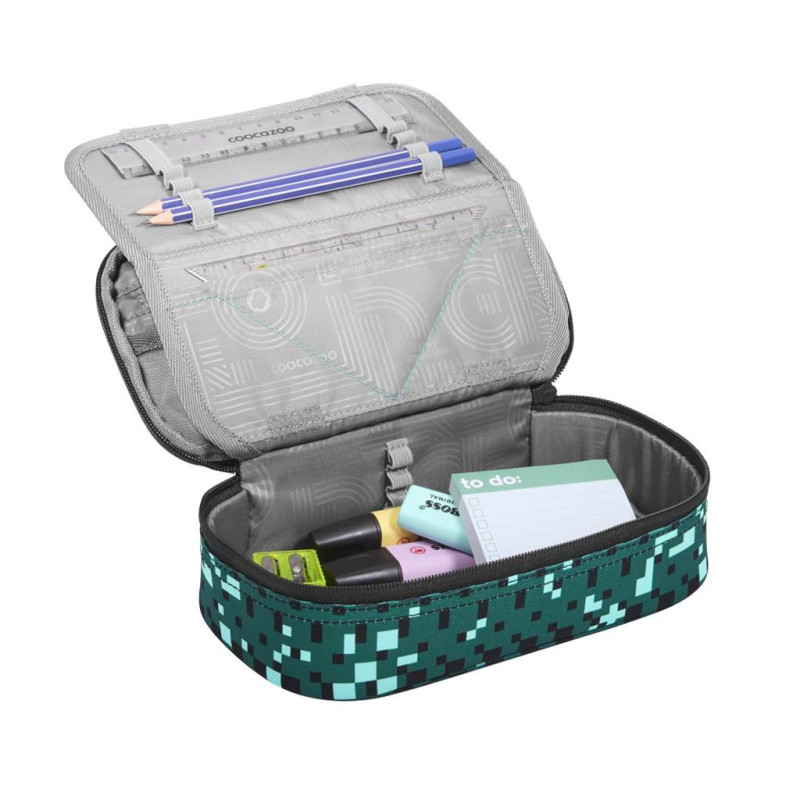 - peračník pre uloženie písacích potrieb, pravítok a ďalších školských alebo osobných predmetov - vrátane malého pravítka a trojuholníku s uhlomerom - vrecko na zips vo veku peračníka pre malé predmety - priehľadná priehradka napr. pre rozvrh hodín - 21 pútok na perá a ceruzky pre prehľadné usporiadanie - pútka pre malé pravítko a všité vrecko pre trojuholník - zatváranie vnútorného veka na suchý zips - zatváranie peračníku na zips Udržateľnosť: - 100% PET RECYCLED - ekologický výrobok, látka je vyrobená z recyklovaných PET fliaš - 100% PFC FREE - používame impregnáciu bez škodlivých PFC chemikálií, naša impregnácia je šetrne vyrobená na vodnej báze - 100% VEGAN PRODUCT- nepoužívame materiály živočíšneho pôvodu - vyrobené s ohľadom na životné prostredie (bluesign® - System Partner) - vyrobené v prevádzke s dobrými sociálnymi a bezpečnostnými podmienkami pre zamestnancov, člen organizácie amfori Technické parametre: - materiál: polyester - rozmery: š. 23 cm x v. 7 cm x h. 12 cm - hmotnosť: 170 g - objem: 1,5 l