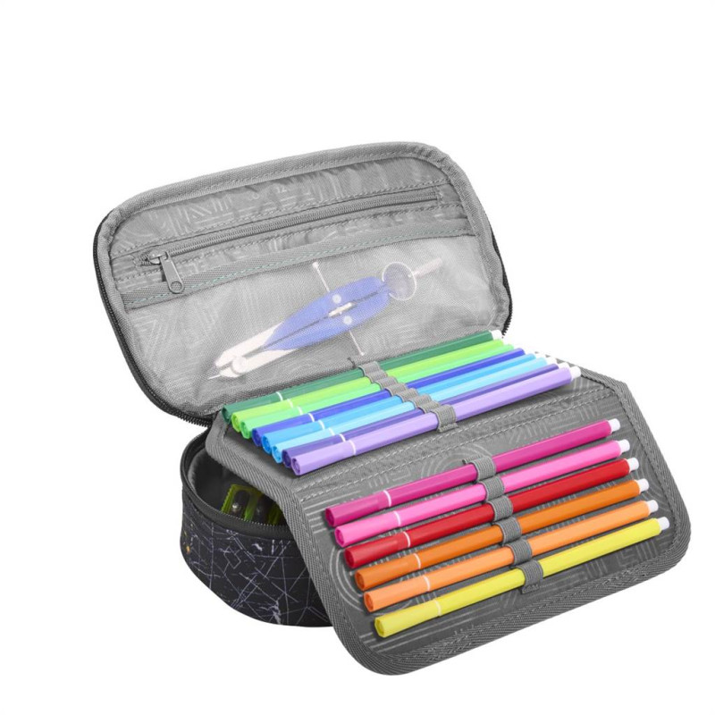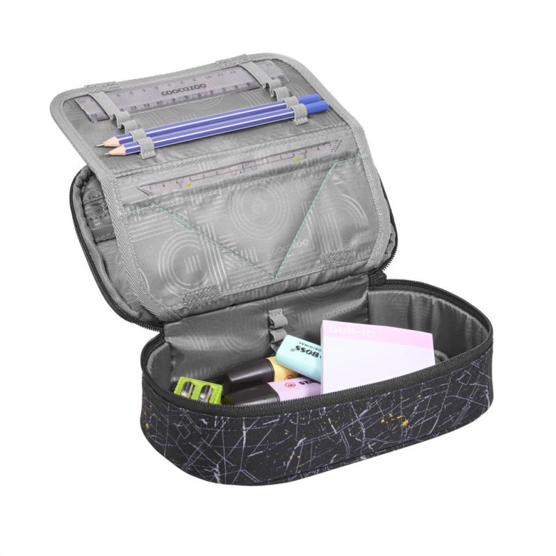- peračník pre uloženie písacích potrieb, pravítok a ďalších školských alebo osobných predmetov - vrátane malého pravítka a trojuholníku s uhlomerom - vrecko na zips vo veku peračníka pre malé predmety - priehľadná priehradka napr. pre rozvrh hodín - 21 pútok na perá a ceruzky pre prehľadné usporiadanie - pútka pre malé pravítko a všité vrecko pre trojuholník - zatváranie vnútorného veka na suchý zips - zatváranie peračníku na zips Udržateľnosť: - 100% PET RECYCLED - ekologický výrobok, látka je vyrobená z recyklovaných PET fliaš - 100% PFC FREE - používame impregnáciu bez škodlivých PFC chemikálií, naša impregnácia je šetrne vyrobená na vodnej báze - 100% VEGAN PRODUCT- nepoužívame materiály živočíšneho pôvodu - vyrobené s ohľadom na životné prostredie (bluesign® - System Partner) - vyrobené v prevádzke s dobrými sociálnymi a bezpečnostnými podmienkami pre zamestnancov, člen organizácie amfori Technické parametre: - materiál: polyester - rozmery: š. 23 cm x v. 7 cm x h. 12 cm - hmotnosť: 170 g - objem: 1,5 l
