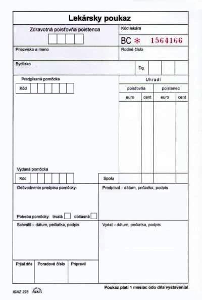 POUKAZ NA ZDRAVOTNU POMOCKU 225