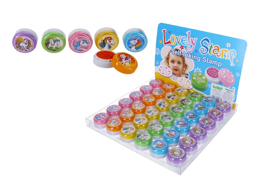 Detská, samonamáčacia, okrúhla pečiatka z plastu s motívom jednorožca. Nakresli si obrázok a vyzdob ho pečiatkami s jednorožcom!Samotlačiace pečiatky s jednorožcom sú ideálne pre všetky kreatívne deti, ktoré si rady maľujú! Na prednom obale je vždy